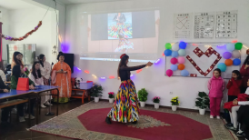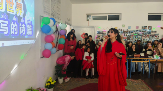整场演出犹如一幅绚丽多彩的画卷,节目紧凑有序、亮点层出不穷:新年歌曲串烧洋溢喜庆氛围,迅速点燃现场热情;葫芦丝演奏旋律悠扬,展现民族音乐的独特韵味;钢琴独奏《北京欢迎你》情感饱满,奏响了中摩友谊的和谐乐章,引发观众共鸣;新疆舞《欢乐地跳吧》节奏明快、舞姿灵动,仿佛带着观众穿越到了热情似火的新疆大地,将气氛推向高潮。来自YCT、HSK各级别的学生自信登台,用中文倾情演绎《我只在乎你》《如愿》《光亮》《夜空中最亮的星》等歌曲,每一个音符都充满了对中华文化的热爱和向往,充分展现了他们在学习中文过程中的努力与成果,以及对中华文化的理解。