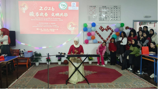祥龙贺岁福满门,骏马迎春乐无疆。在2026年新春佳节即将来临之际,阿卜杜·马立克·阿萨德大学孔子学院(丹吉尔孔子学院)张灯结彩、喜气洋洋,一场以“骏马迎春,文明共彩”为主题的春节晚会在此盛大举行。